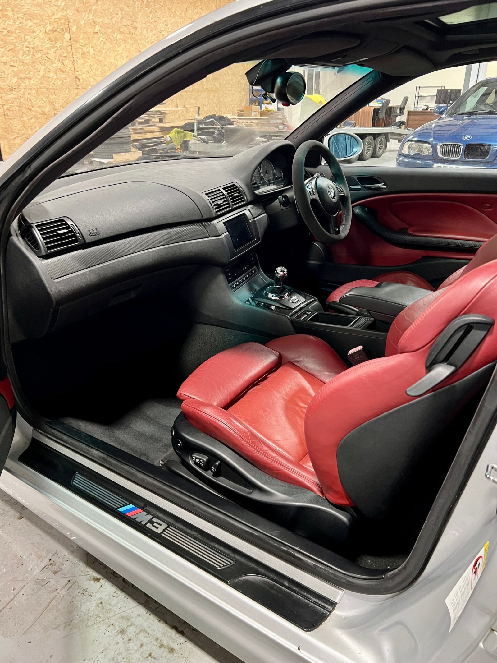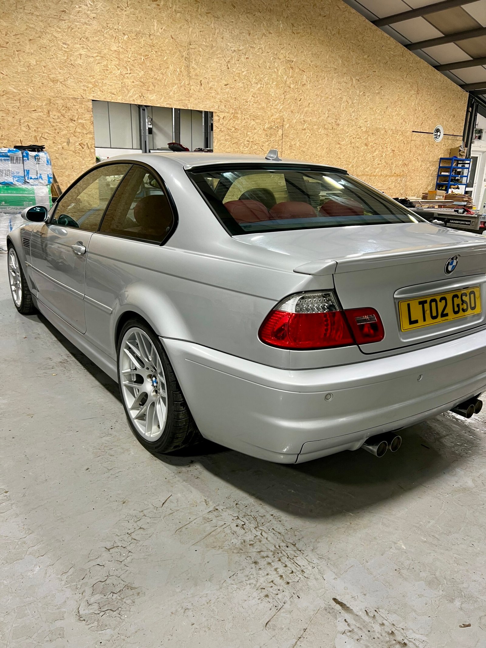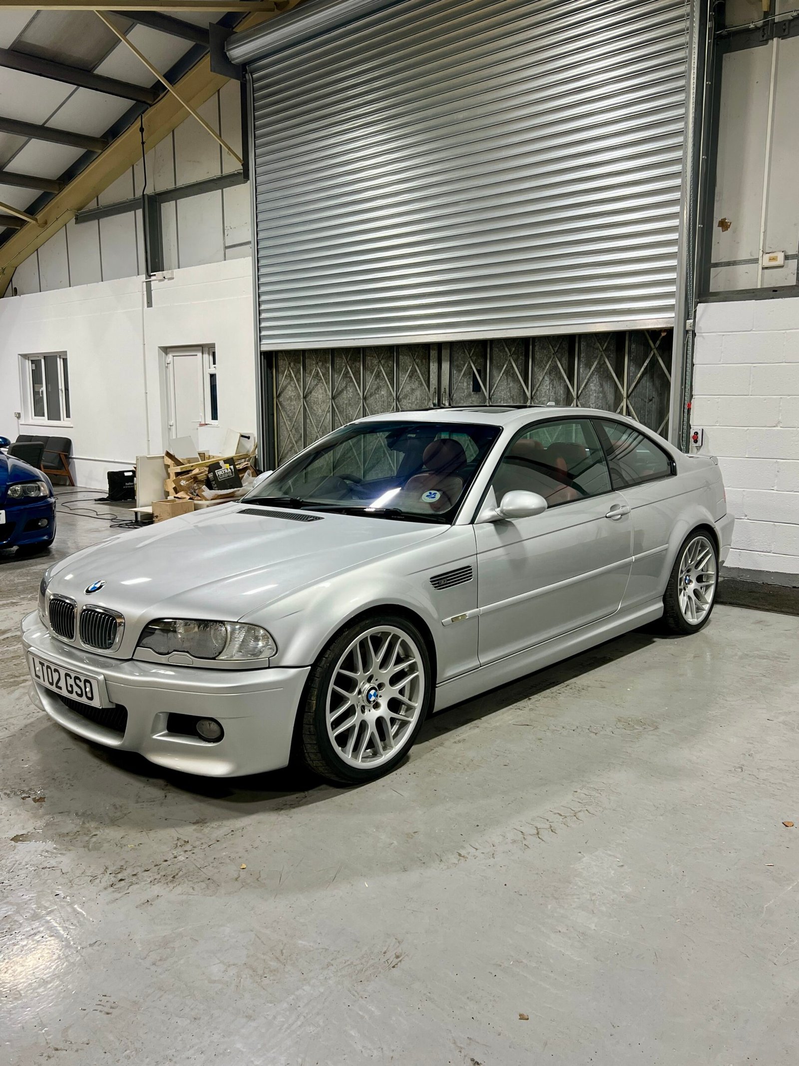 Stunning Titan Silver 2002 BMW e46 M3 SMG coupe for sale – this m3 is presented in a great colour combo and great spec and has just been through full mechanical prep and is sold with extendable warranty.